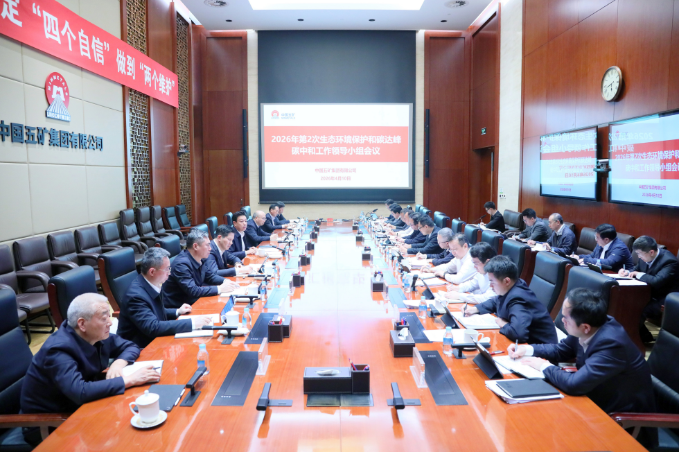 4月10日,中国五矿召开2026年第2次生态环境保护和碳达峰碳中和工作领导小组会议。中国五矿党组书记、董事长,生态环境保护和碳达峰碳中和工作领导小组组长陈得信主持会议并讲话。领导班子其他成员出席会议。